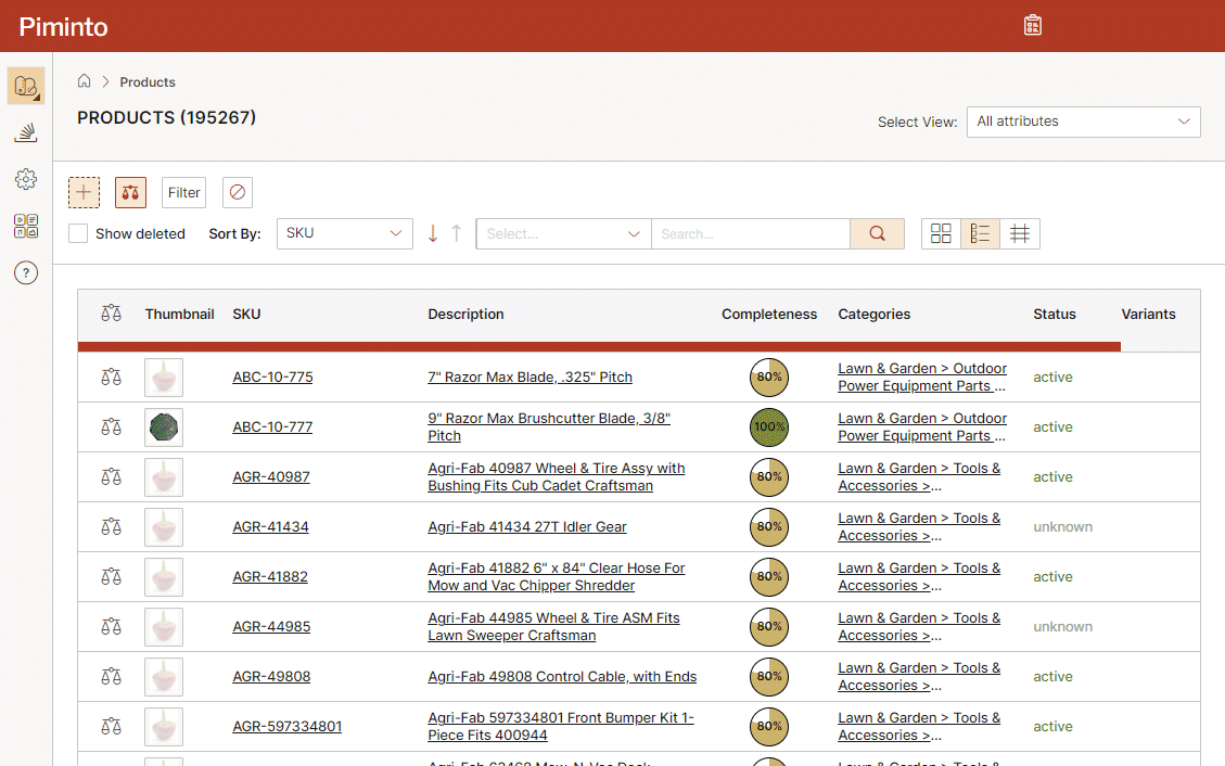 The Product Information Management (PIM) System offers users the flexibility to view product data in three different formats: list, cards, or spreadsheet view. Each view has its own advantages and user interactions.