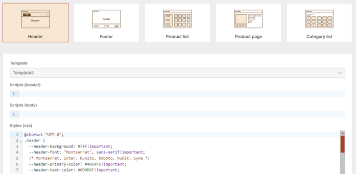 Standard and Custom CSS Templates can be applied to the brand portal and analytics, tracking and snippet code can be added..